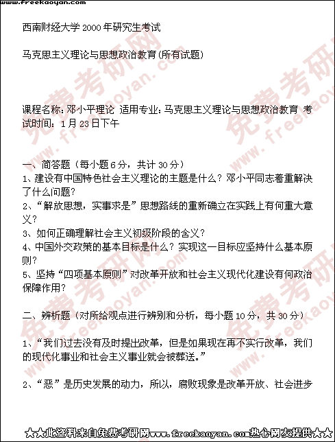 西南财经大学2000年半岛在线注册真题-马克思主义理论与思想政治教育(所有试题)