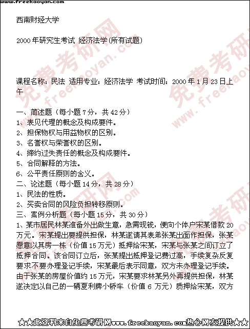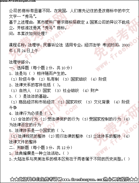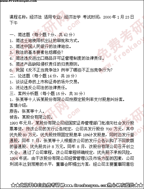 西南财经大学2000年半岛在线注册真题-经济法学(所有试题)