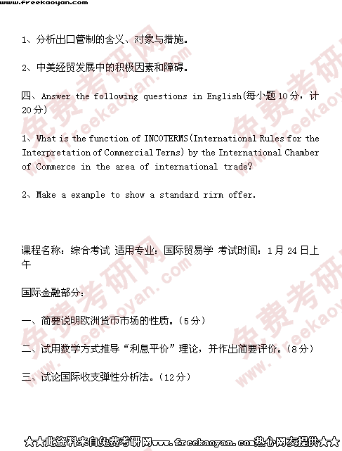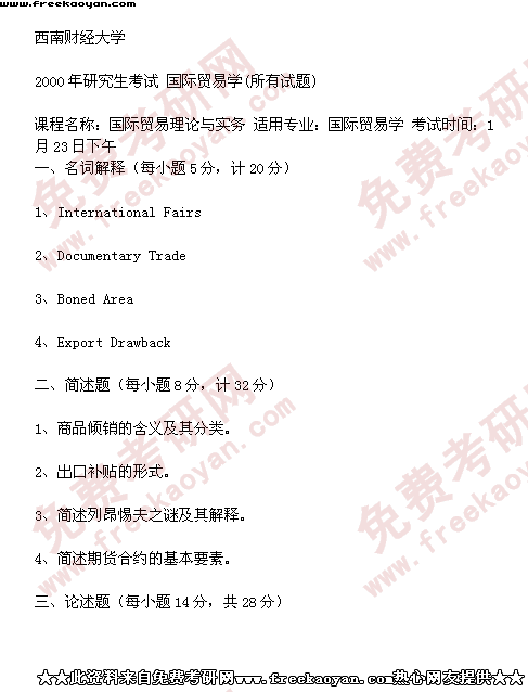 西南财经大学2000年半岛在线注册真题-国际贸易学(所有试题)