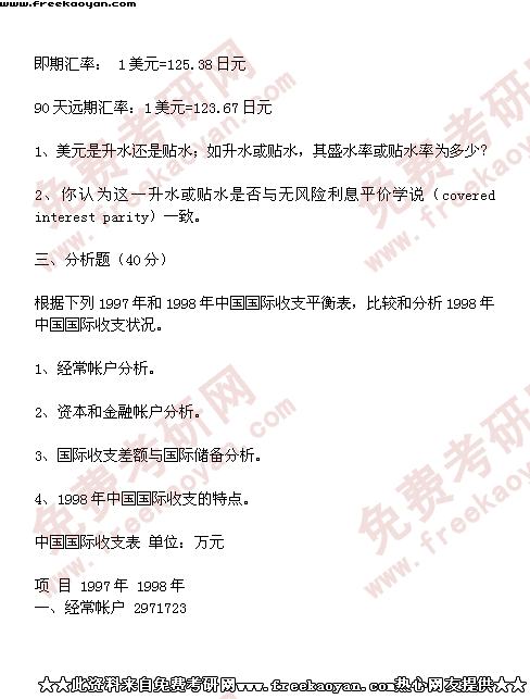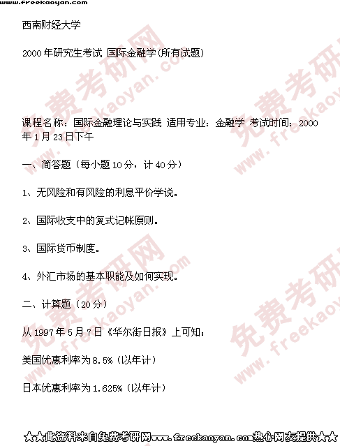 西南财经大学2000年半岛在线注册真题-国际金融学(所有试题)