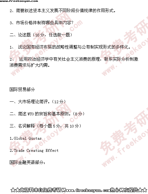 西南财经大学2000年半岛在线注册真题-国际贸易学(所有试题)