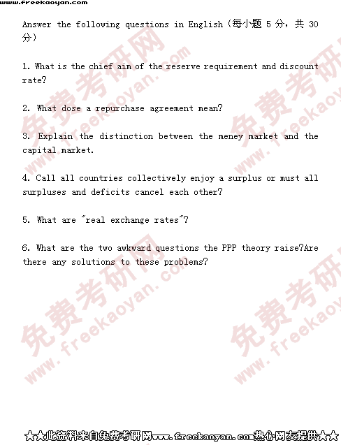 西南财经大学2000年半岛在线注册真题-金融学(货币方向所有试题)