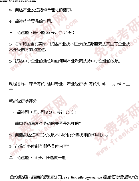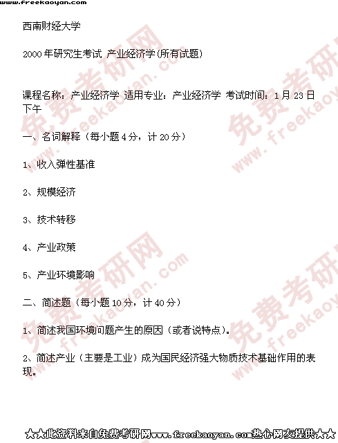 西南财经大学2000年半岛在线注册真题-产业经济学(所有试题)