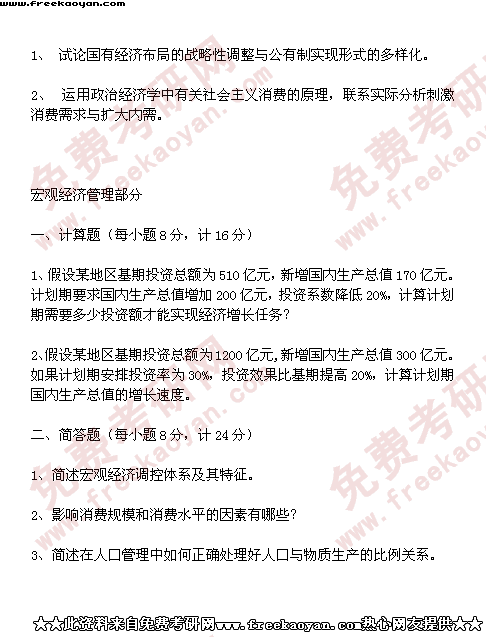 西南财经大学2000年半岛在线注册真题-国民经济学(所有试题)