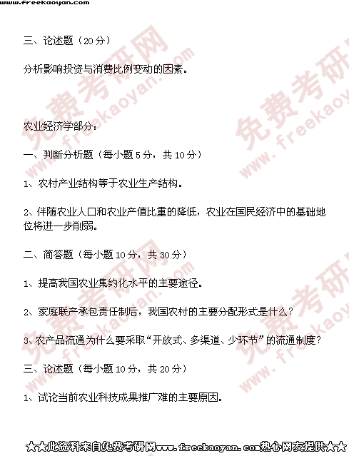 西南财经大学2000年半岛在线注册真题-人口、资源与环境经济学(所有试题)