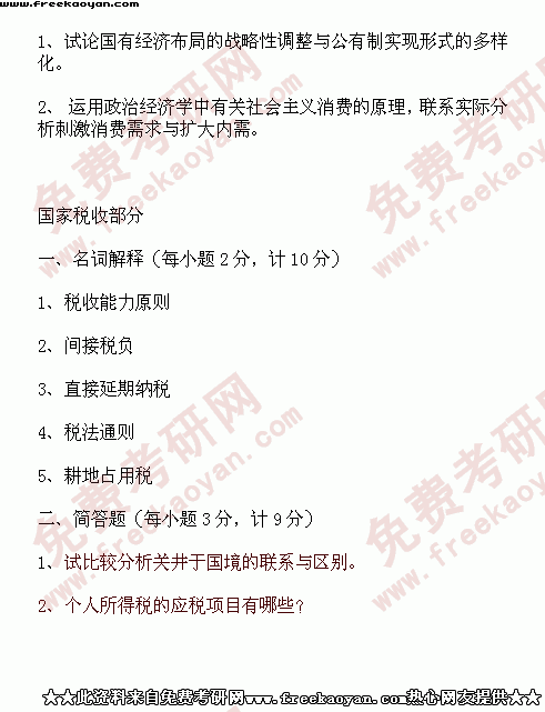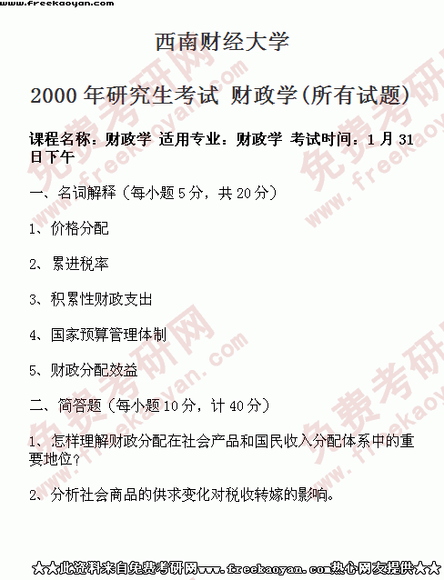 西南财经大学2000年半岛在线注册真题-财政学(所有试题)