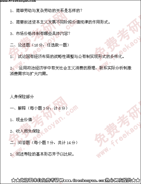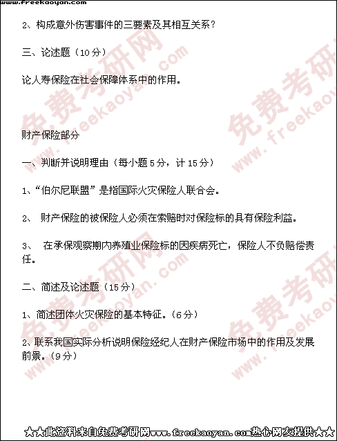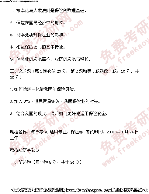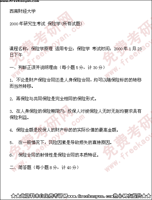 西南财经大学2000年半岛在线注册真题-保险学(所有试题)