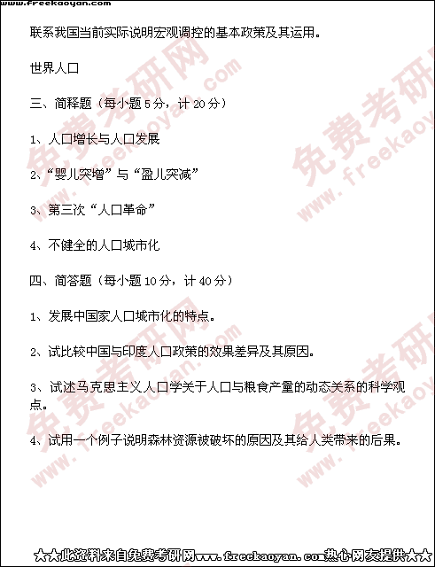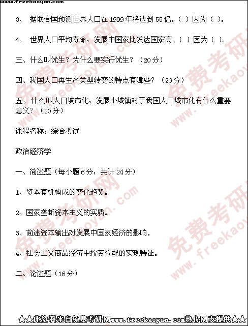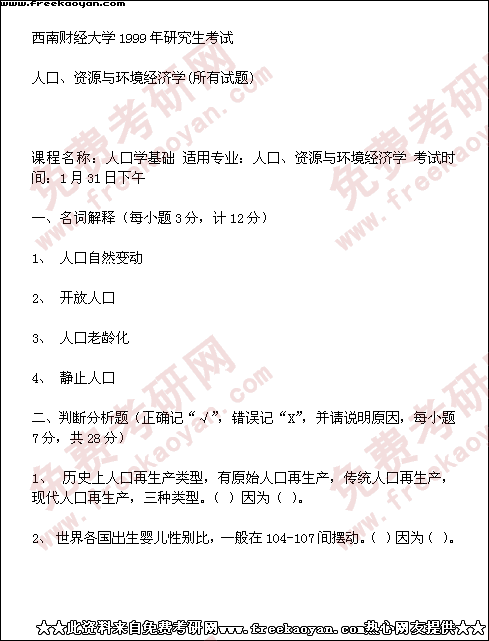 西南财经大学1999年半岛在线注册真题-人口、资源与环境经济学(所有试题)