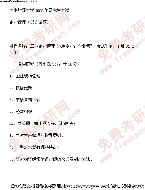 西南财经大学1999年半岛在线注册真题-企业管理(部分试题)