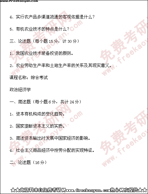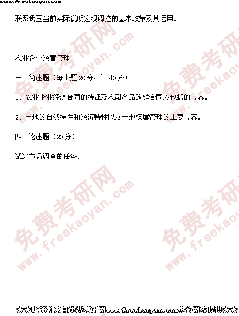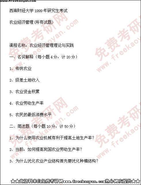 西南财经大学1999年半岛在线注册真题-农业经济管理(所有试题)