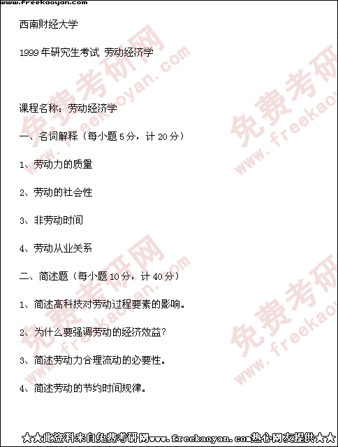 西南财经大学1999年半岛在线注册真题-劳动经济学