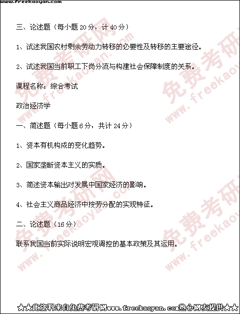 西南财经大学1999年半岛在线注册真题-人口、资源与环境经济学(所有试题)