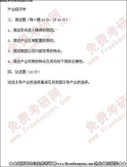西南财经大学2000年半岛在线注册真题-产业经济学(所有试题)