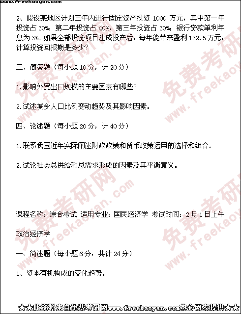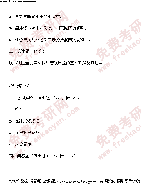 西南财经大学1999年半岛在线注册真题-人口、资源与环境经济学(所有试题)