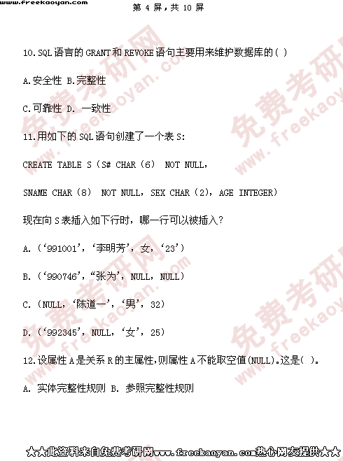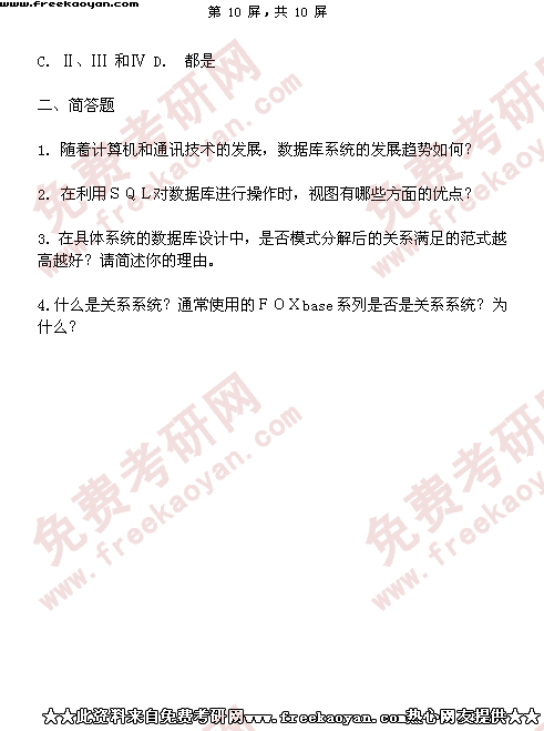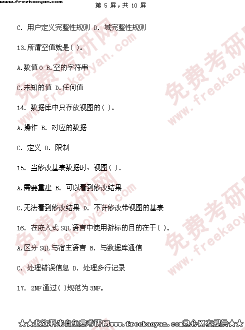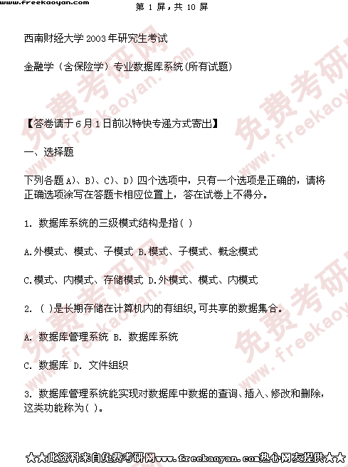 西南财经大学2003年半岛在线注册真题-金融学(含保险学)专业数据库系统(所有试题)