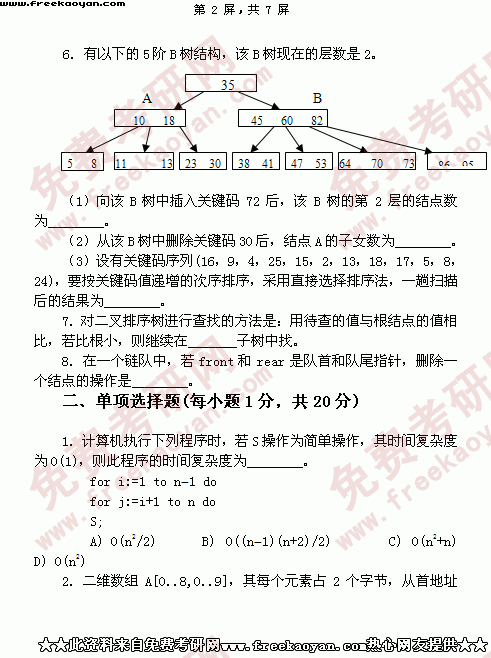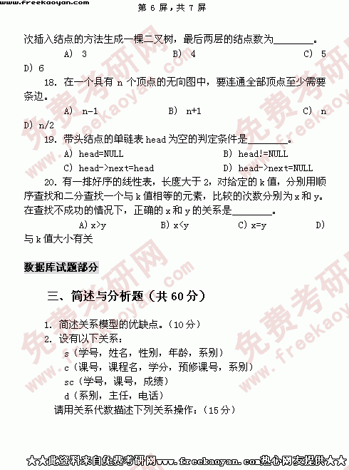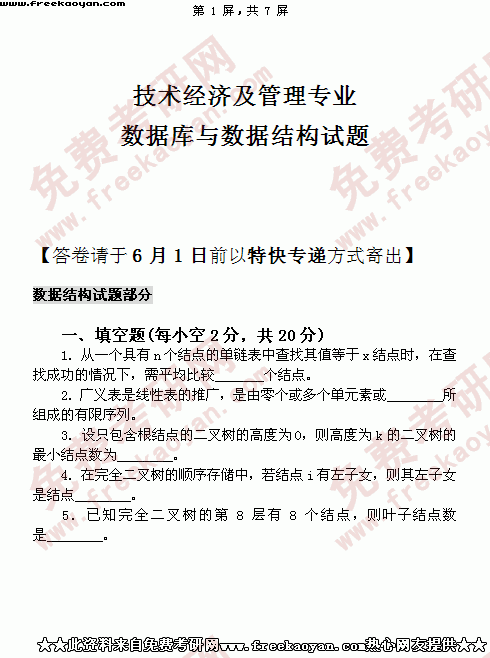 西南财经大学2003年半岛在线注册真题-技术经济及管理专业数据库与数据结构试题