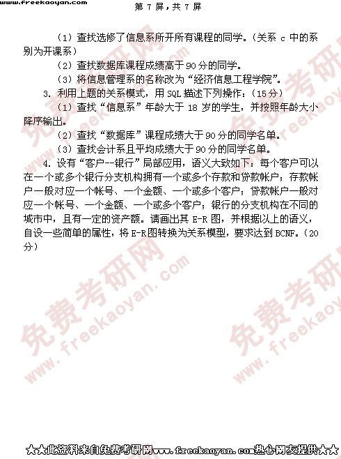 西南财经大学2003年半岛在线注册真题-金融学(含保险学)专业数据库系统(所有试题)