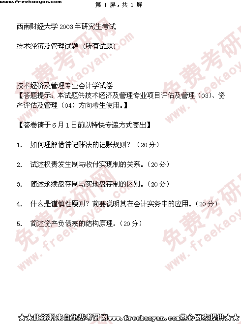 专业课半岛在线注册经验 本站小编 FreeKaoyan 2018-01-22西南财经大学2003年半岛在线注册真题-技术经济及管理专业数据库与数据结构试题