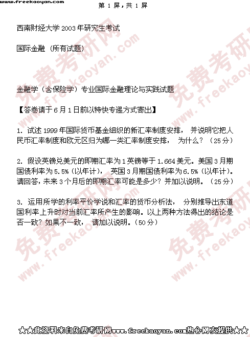 专业课半岛在线注册经验 本站小编 FreeKaoyan 2018-01-22西南财经大学2003年半岛在线注册真题-金融学(货币方向)(所有试题)