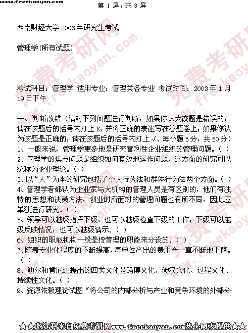 西南财经大学2003年半岛在线注册真题-管理学(所有试题)