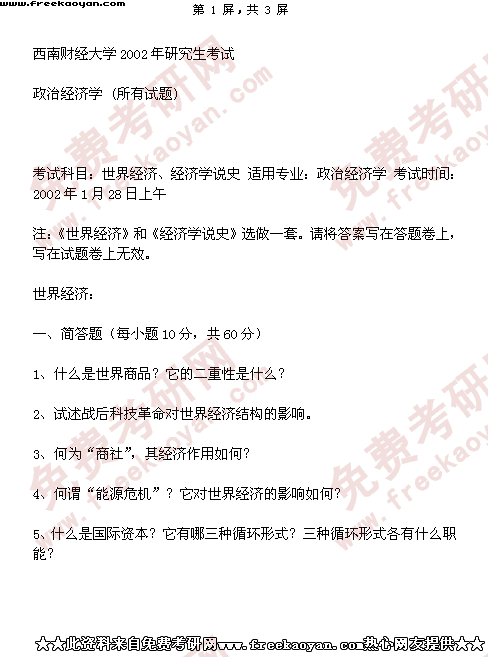 西南财经大学2002年半岛在线注册真题-政治经济学(所有试题)