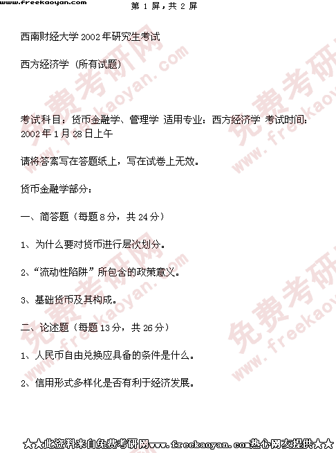 西南财经大学2003年半岛在线注册真题-金融学(货币方向)(所有试题)