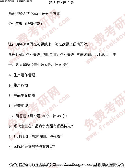 西南财经大学2002年半岛在线注册真题-企业管理(所有试题)