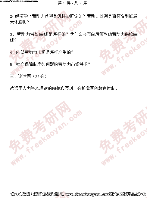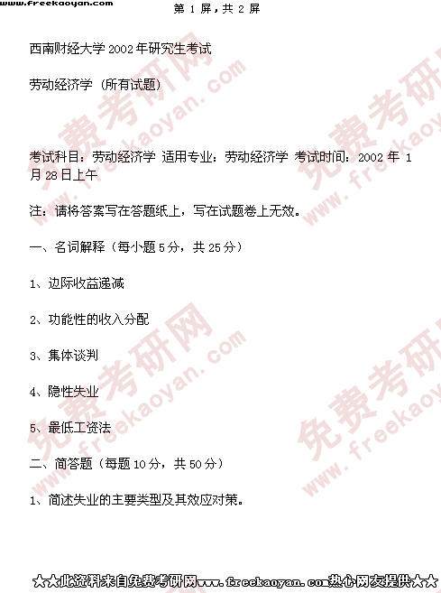 西南财经大学2002年半岛在线注册真题-劳动经济学(所有试题)