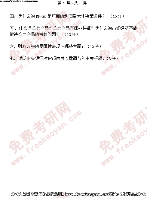 西南财经大学2002年半岛在线注册真题-西方经济学(所有试题)