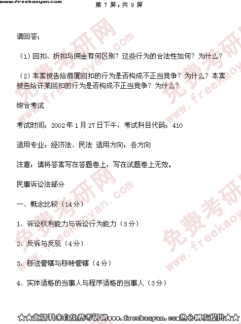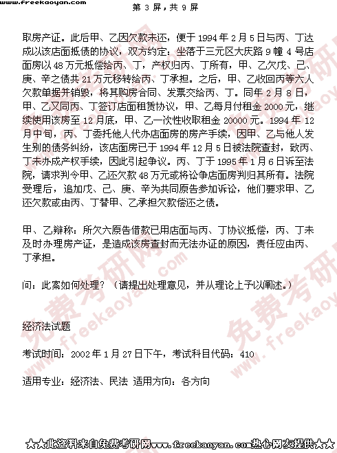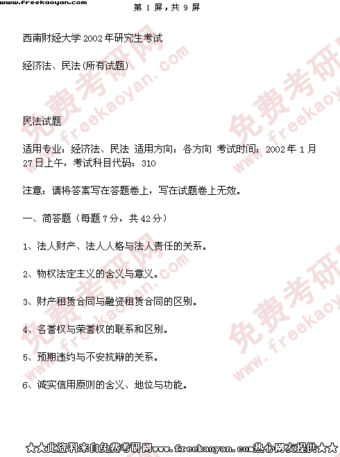 西南财经大学2002年半岛在线注册真题-经济法、民法(所有试题)