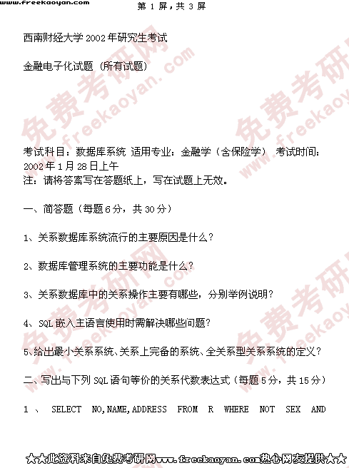 西南财经大学2002年半岛在线注册真题-金融电子化试题(所有试题)
