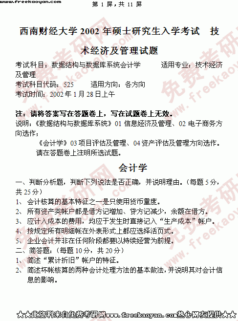 西南财经大学2002年半岛在线注册真题-技术经济及管理