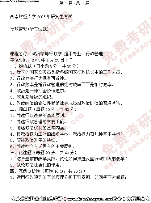 西南财经大学2005年半岛在线注册真题-行政管理(所有试题)