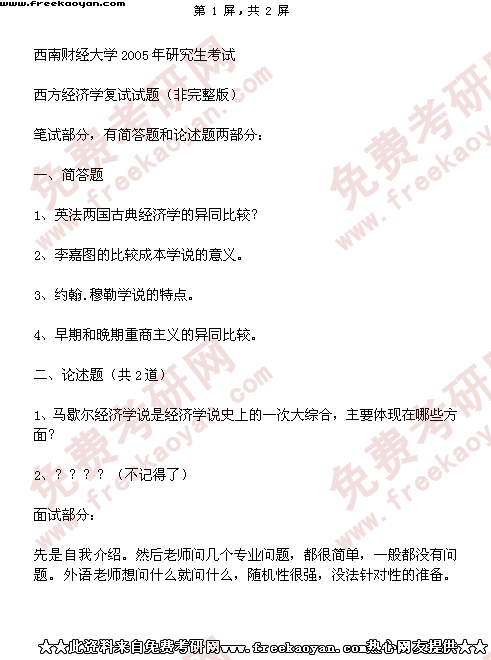 西南财经大学2005年半岛在线注册真题-西方经济学复试试题(非完整版)