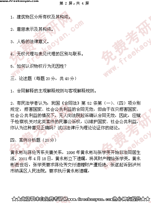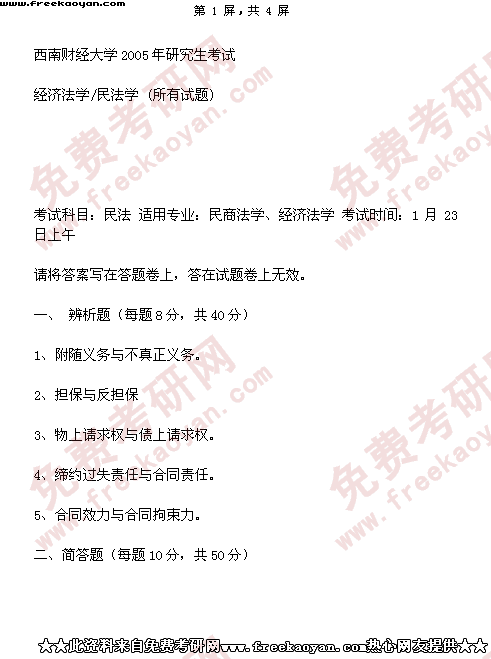西南财经大学2005年半岛在线注册真题-经济法学民法学(所有试题)