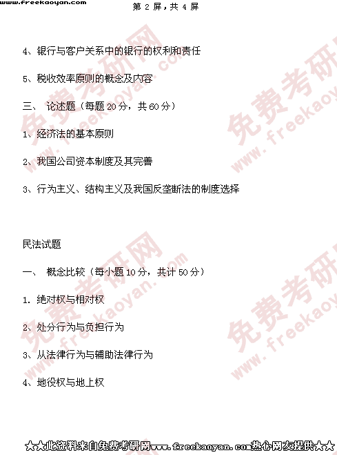 西南财经大学2004年半岛在线注册真题-经济法、民法(所有试题)