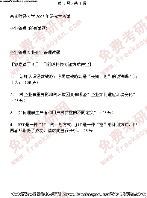 西南财经大学2003年半岛在线注册真题-企业管理(所有试题)