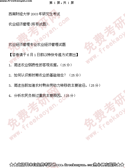 西南财经大学2003年半岛在线注册真题-农业经济管理(所有试题)