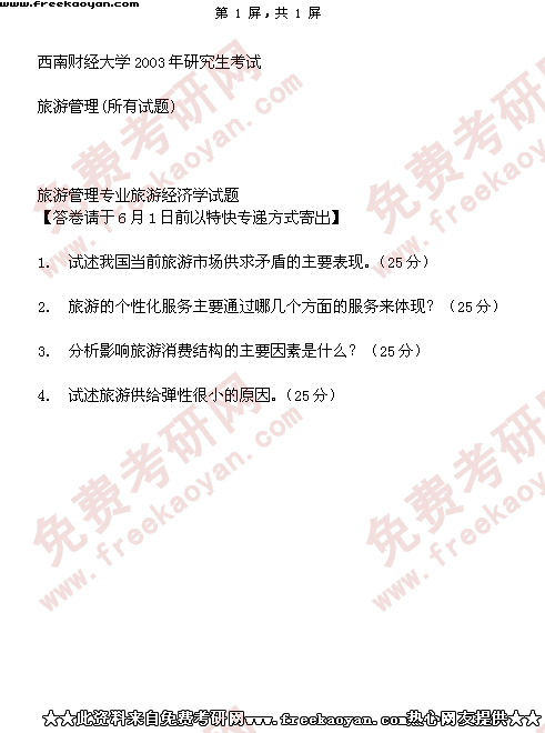 西南财经大学2003年半岛在线注册真题-旅游管理(所有试题)