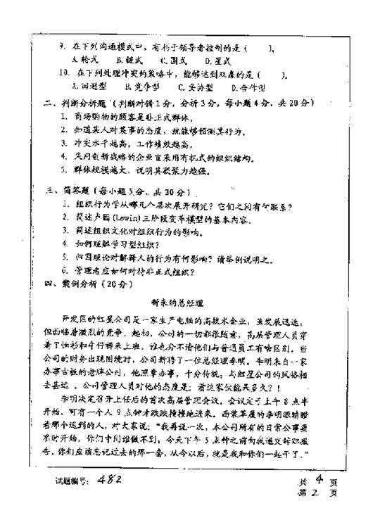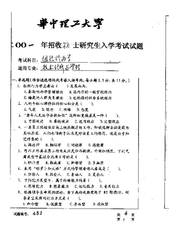 华中科技大学2001年半岛在线注册真题-组织行为学