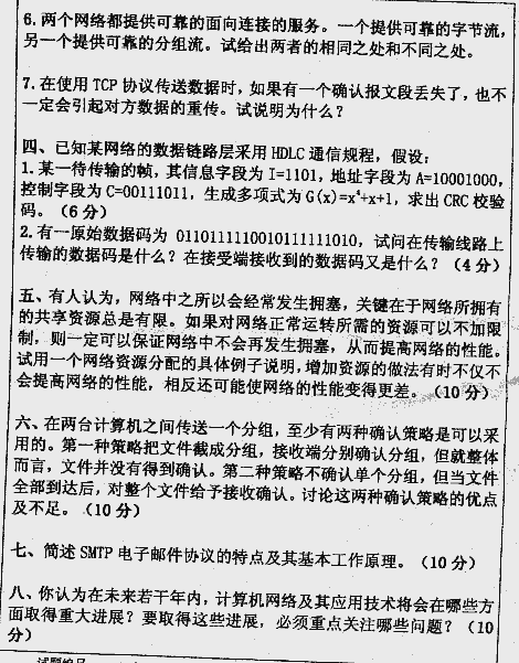 华中科技大学2000年半岛在线注册真题-计算机网络
