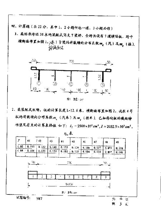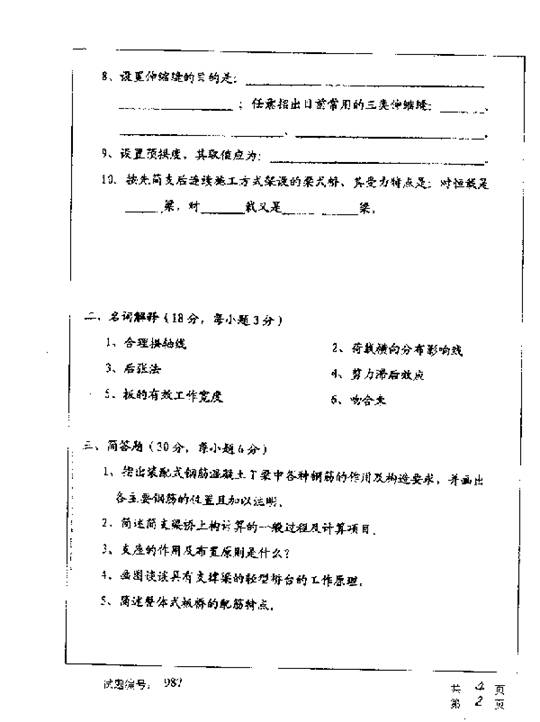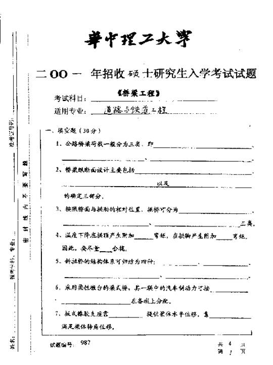 华中科技大学2001年半岛在线注册真题-桥梁工程
