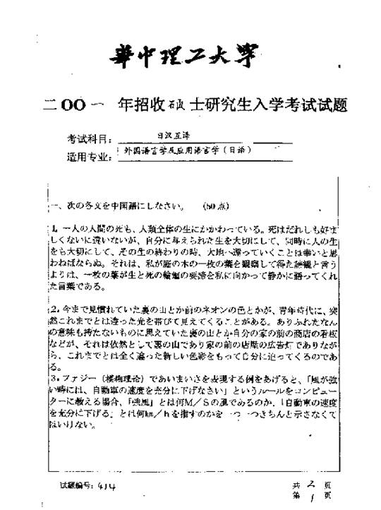 华中科技大学2001年半岛在线注册真题-日汉互译