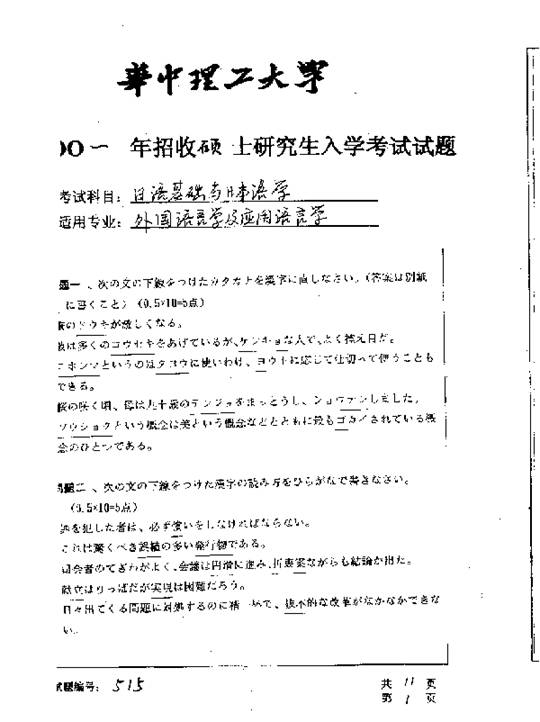 ...专业课半岛在线注册经验 本站小编 FreeKaoyan 2018-01-22华中科技大学2001年半岛在线注册真题-日汉互译