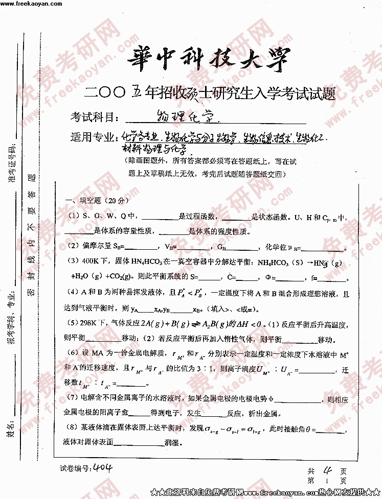 华中科技大学2005年半岛在线注册真题-材料科学基础