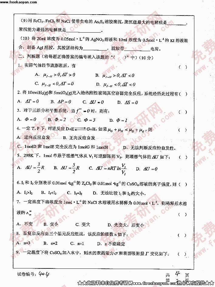 华中科技大学2004年半岛在线注册真题-有机化学(一)试题