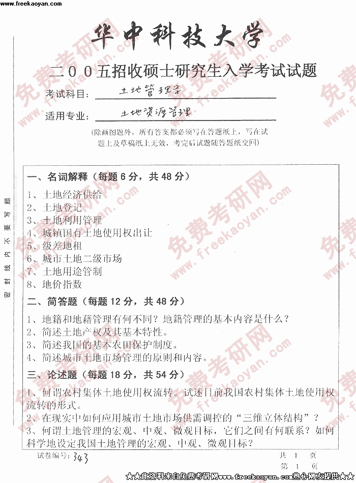 相关话题/半岛在线注册真题 华中科技大学 管理学 土地