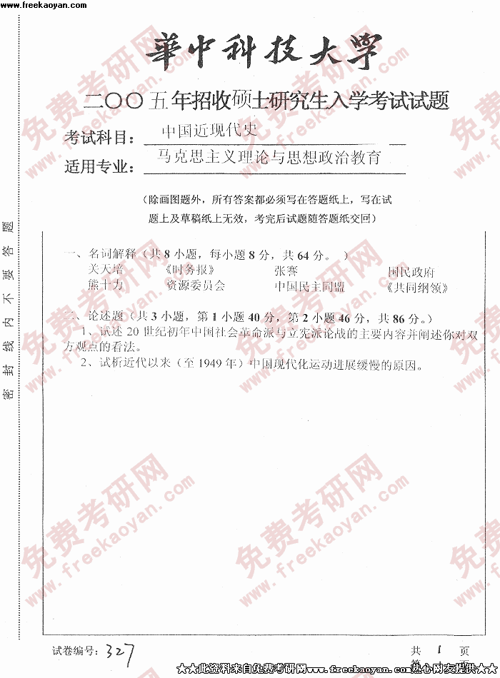 专业课半岛在线注册经验 本站小编 FreeKaoyan 2018-01-22华中科技大学2005年半岛在线注册真题-西方马克思主义