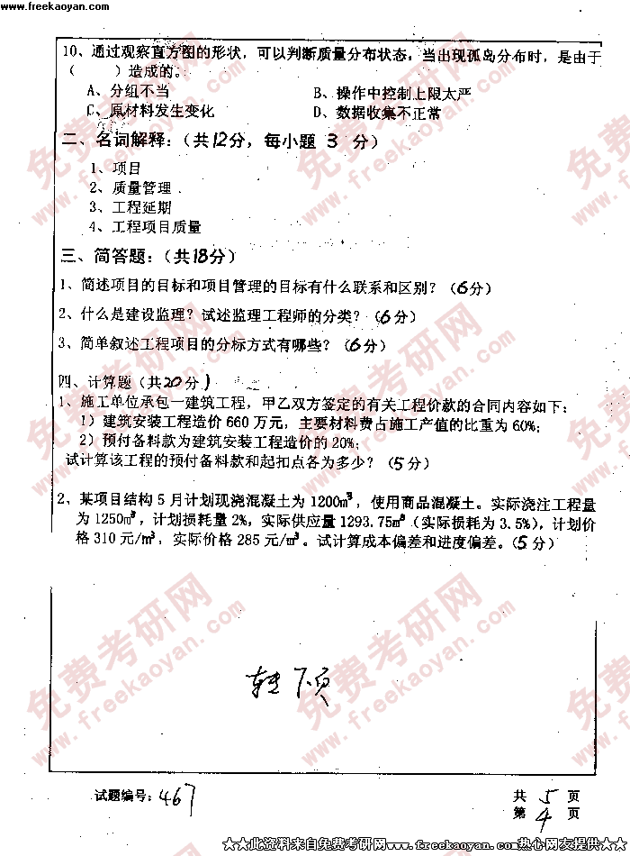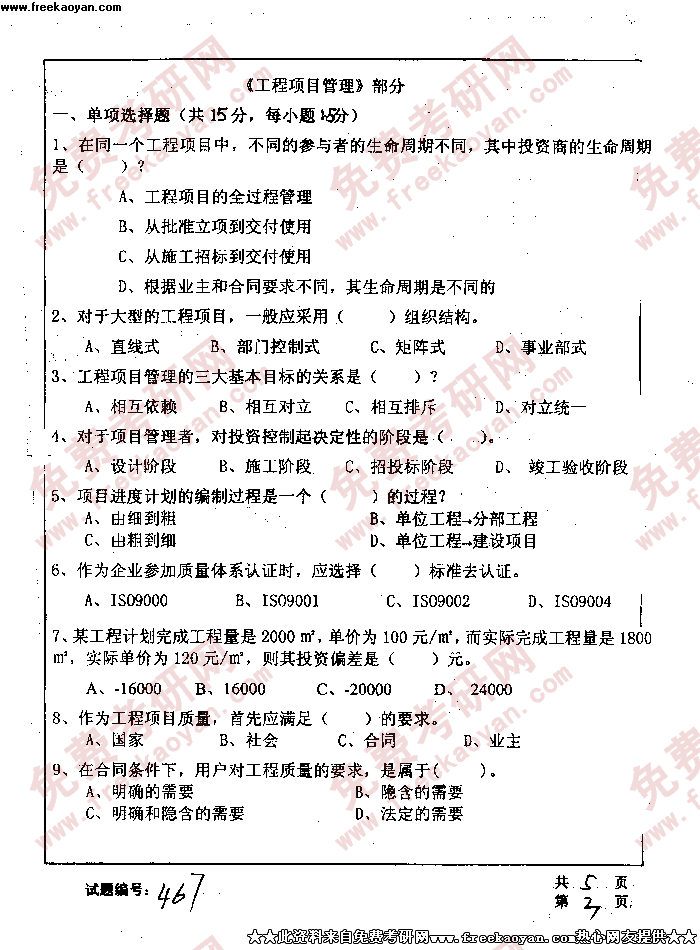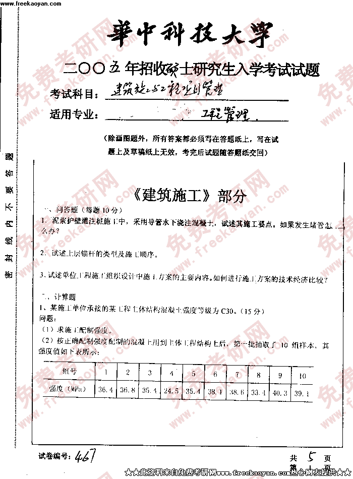 华中科技大学2005年半岛在线注册真题-建筑施工预工程项目管理