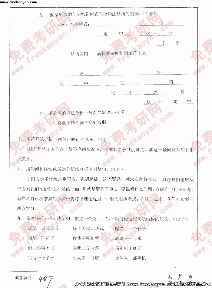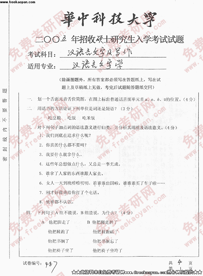 华中科技大学2005年半岛在线注册真题-汉语言文字及写作